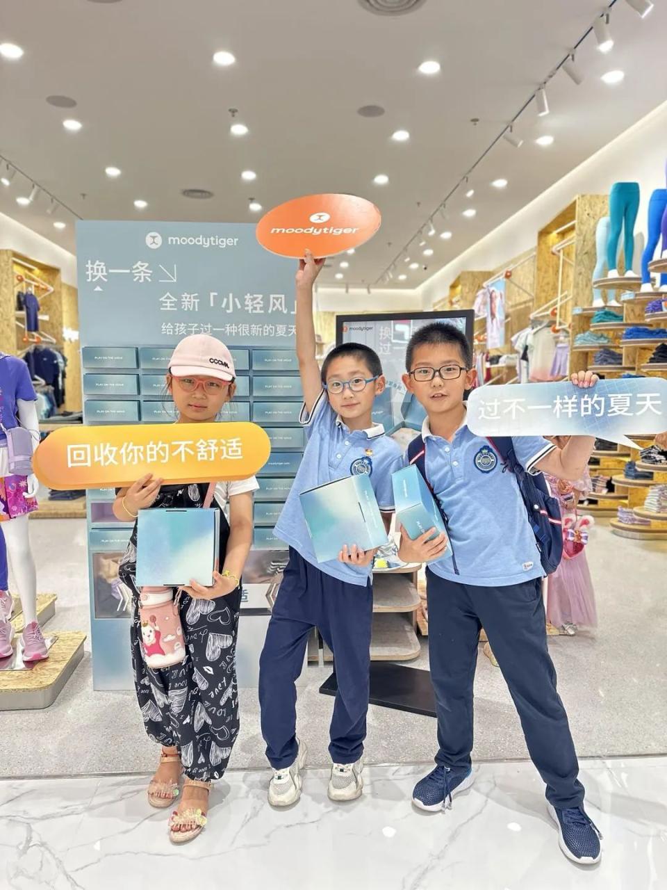 与此同时,moodytiger联动了全国18间门店,在线下发起一场 “换一条小轻风,过一个新夏天 ”的活动 ,家长和小朋友拿一条她们不喜欢不舒服的旧裤子,换取一条品牌的王牌产品「小轻风」紧身裤。在扩宽用户体验维度的同时,实现新用户的外延和扩张,打造极致用户体验。