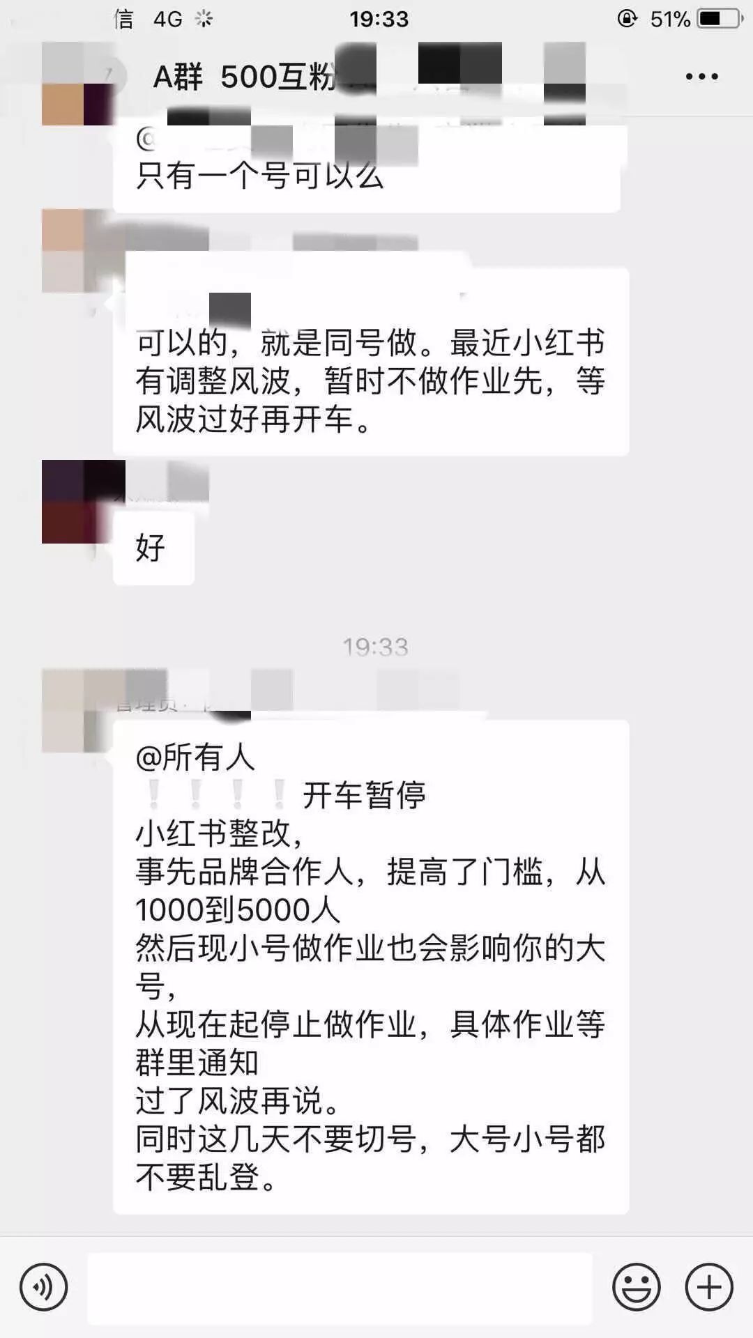 恐慌情绪迅速开始在各个小红书群蔓延,被取消资格的人越来越多。下午五点,一位小红书的品牌主(官方认证品牌方)在朋友圈说,原来近2万多名品牌合作人如今只剩下五千人。