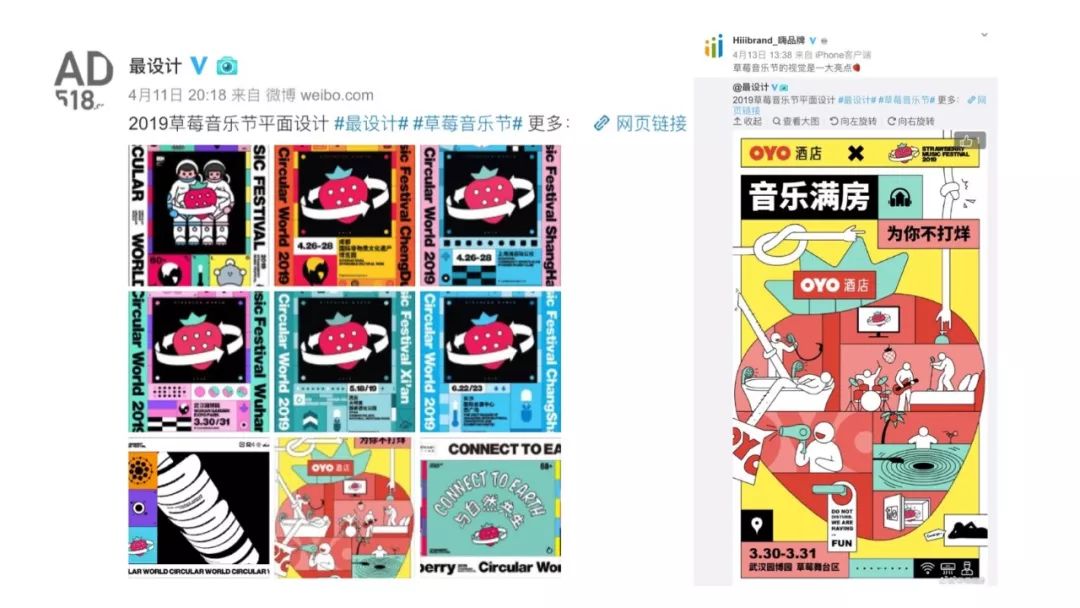 最近一张海报登上了各大主流社交平台,微博上的设计大V对其进行了评论转发,经打听,这就是OYO酒店与草莓音乐节的合作海报。