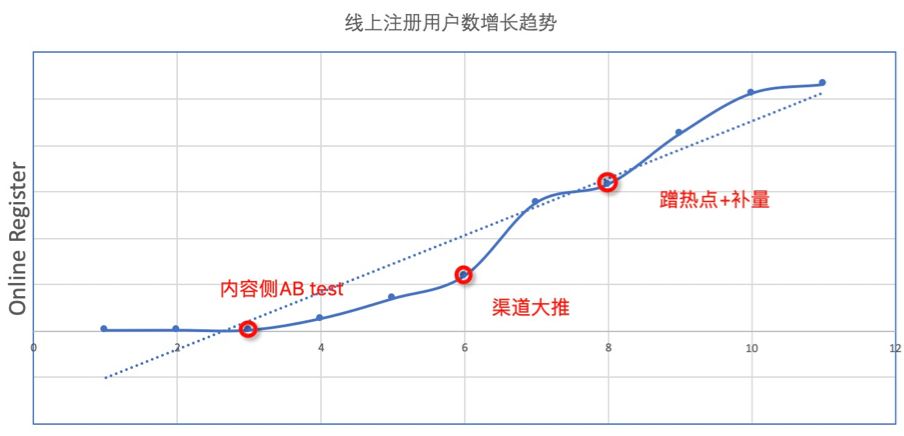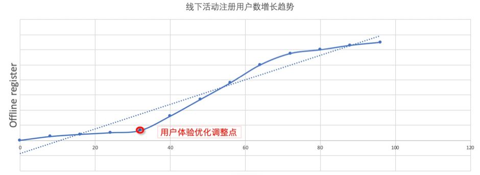 复盘线下活动的增长数据后会发现,增长曲线也体现出了和线上流量增长曲线近似的增长拐点。