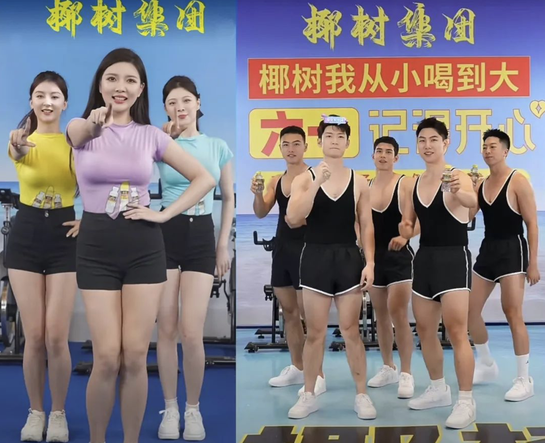 从3月初开始,在椰树集团的抖音直播间出现了穿着紧身背心或黑色透视装的男主播。椰树集团还开设两个账号,白底篮字为女主播,蓝底黄字为男主播。网友戏称,“椰树平等地物化每一种性别”,如今椰树的“土欲直播”反而逐渐被网友所接受,在微博的一项36万人投票中,超30万人认为椰树“不算擦边”。