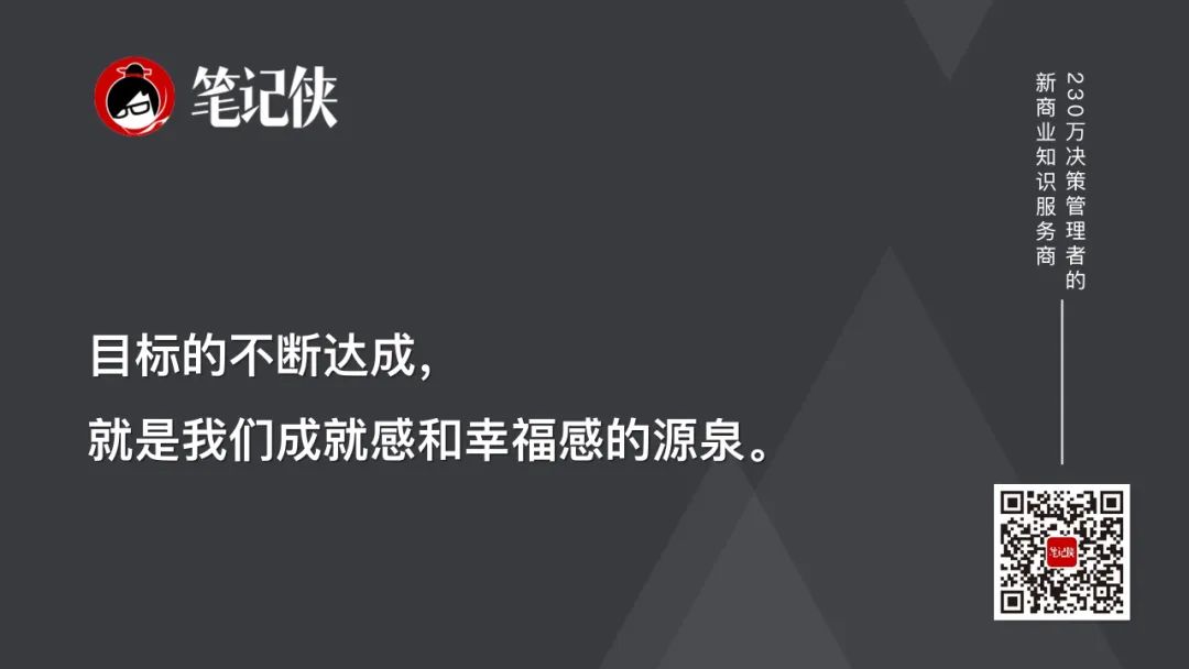 合理地设定一个又一个目标,这些目标一开始不用太大,但这些目标的不断达成,这就是我们成就感和幸福感的源泉。