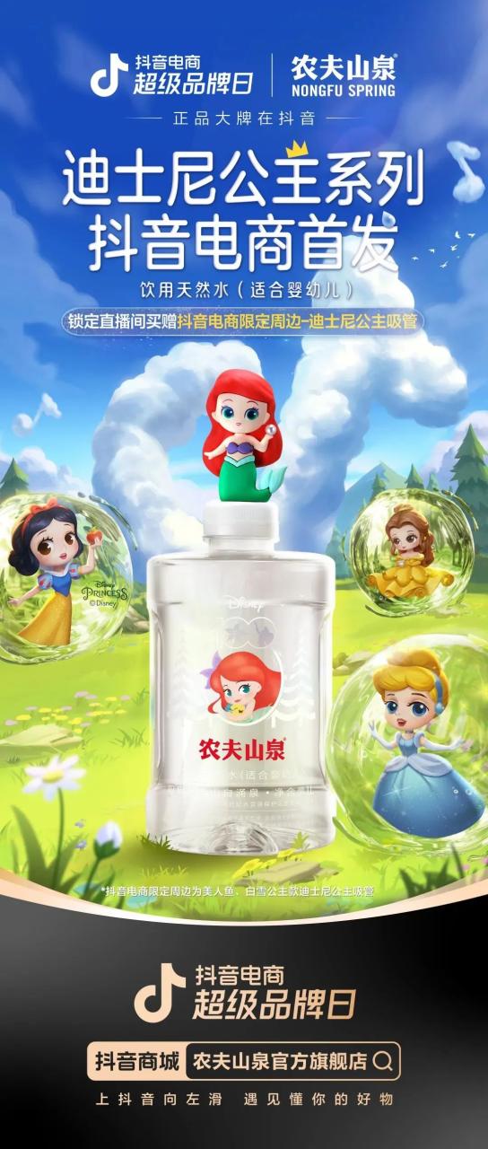 基于新一代母婴人群所追求沉浸感和参与感,信赖场景式安利、沉浸式感受,因而农夫山泉婴儿水除了在抖音平台常规性的种草行为之外,还携手迪士尼公主IP定制了创意吸管和礼盒周边,最大化地挖掘出IP联名的营销价值,搭建产品声量到销量的转化链路。