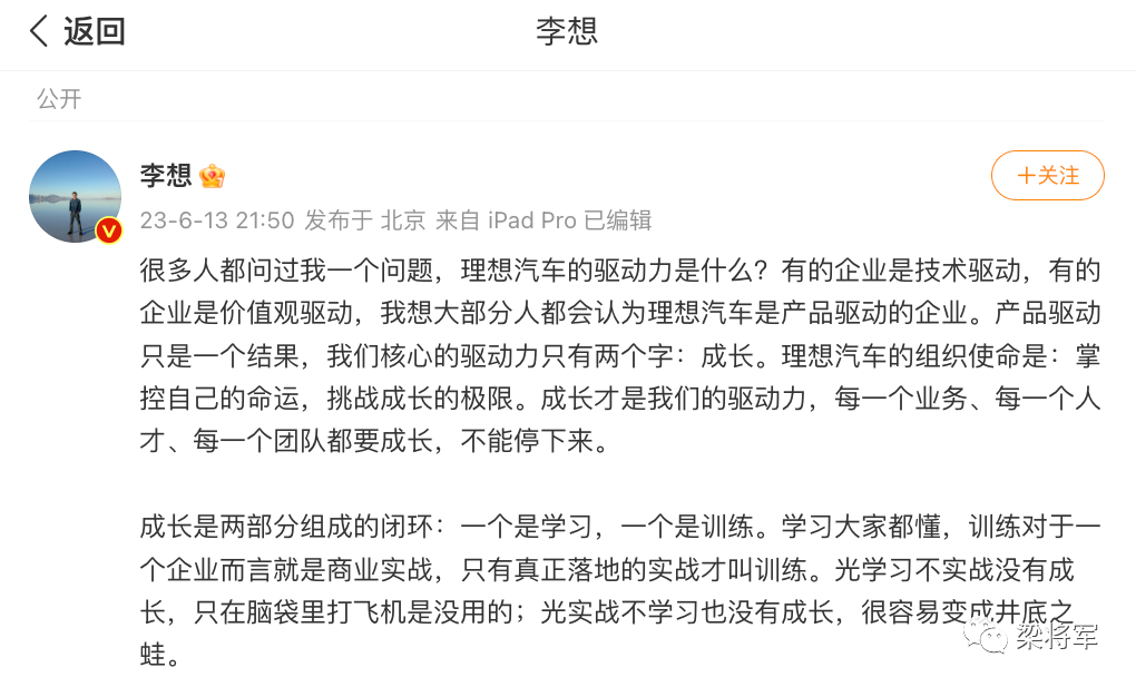 为什么李想那篇讲理想汽车驱动力的微博长文能刷屏?因为他聊的话题叫“成长”。