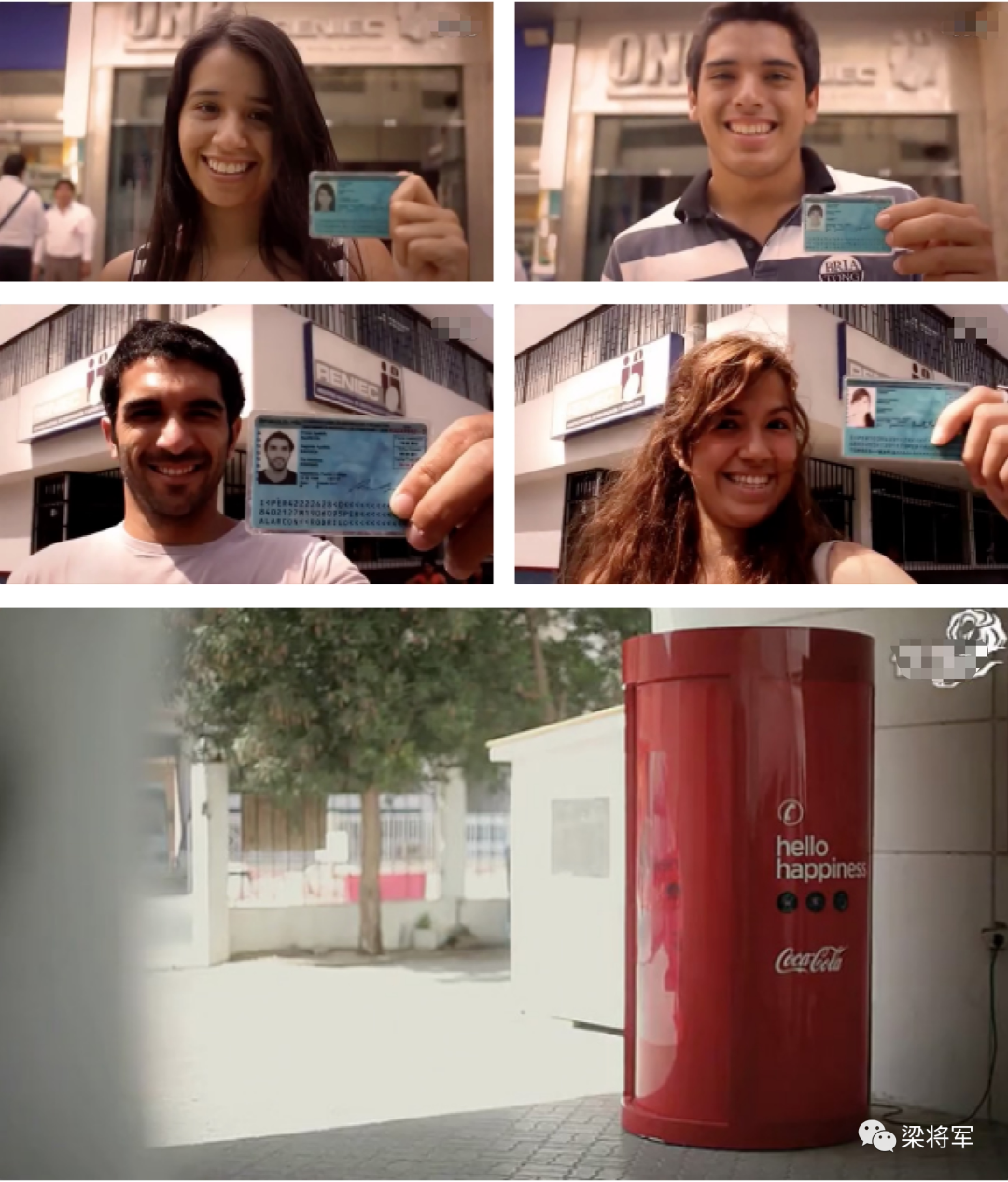 可口可乐一直关注着全球社会议题。他们发现,秘鲁的幸福指数很低,于是在当地投放了30台微型照相机,这些照相机可以快速帮人们拍摄各种证件照。但是,只有捕捉到人们嘴角上扬时,摄像机才会启动。