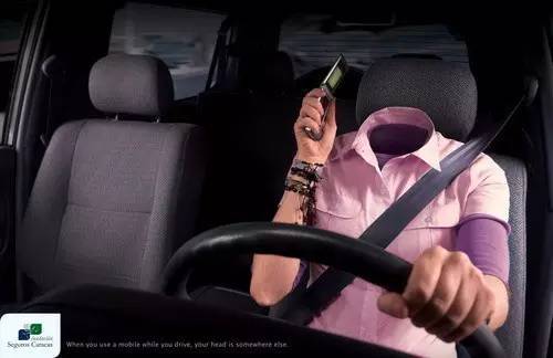 比如下面这个加拉加斯保险基金会广告:当你开车时使用手机,你的头是在别的地方。