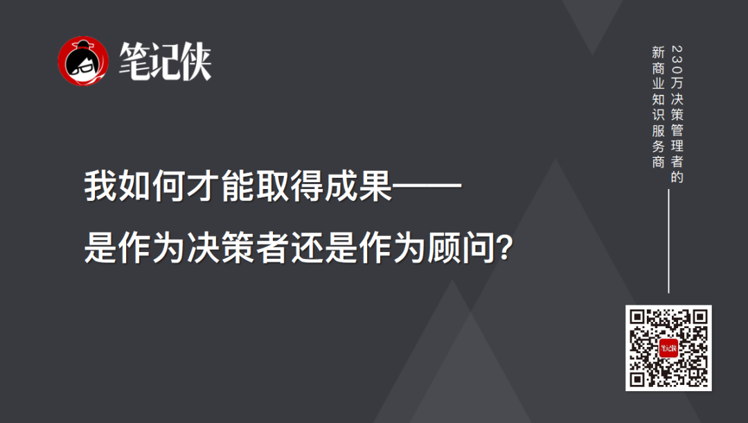 所以,另一个关键的问题是:我如何才能取得成果——是作为决策者还是作为顾问?