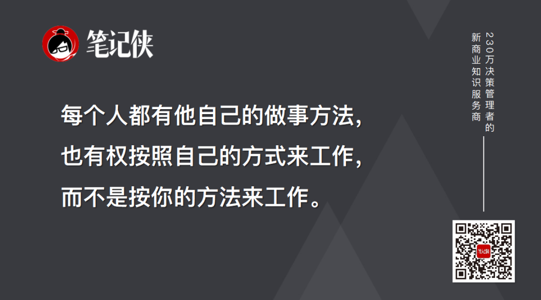 每个人都有他自己的做事方法,也有权按照自己的方式来工作,而不是按你的方法来工作。