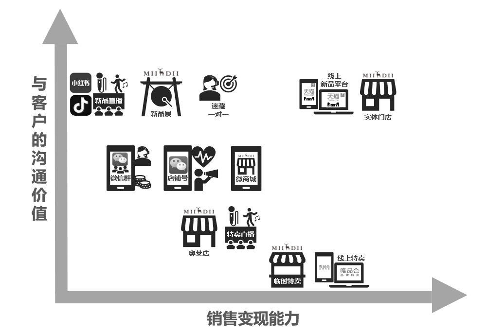 线下卖正价;线上天猫做第一批线上橱窗,维持基本合理的折扣;唯品会作为清货渠道;私域做最高价值顾客的蓄水池。