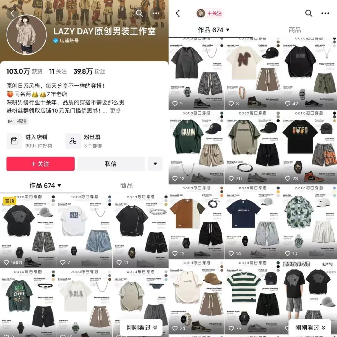 这个账号是在抖音上卖男装的,内容形式不是视频和直播,而是图文。
