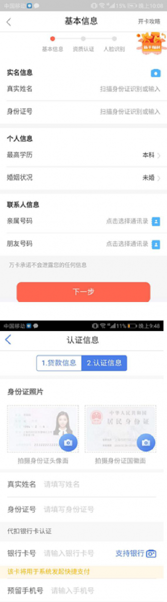 3、征信补录:在完成身份验证后,目前大部分正规平台都需要查询人行征信,来确保你的征信记录是否有误点和逾期。从而决定给你多少额度。
