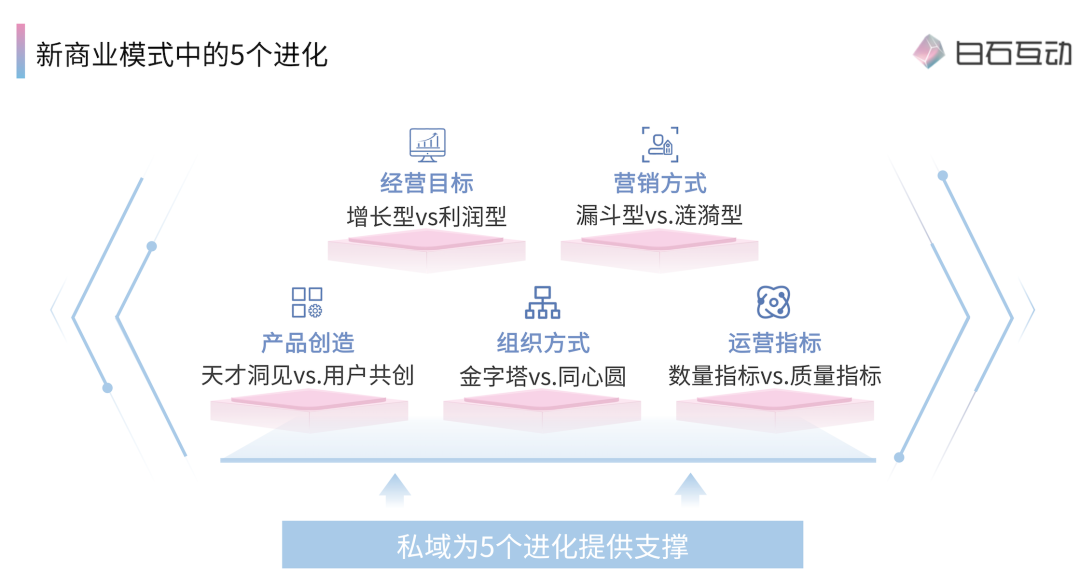 刚才谈到这5个进化的起点都是消费者,所以也可以说是私域的技术和方法给这一次商业模式的跃迁提供了有力的支点。