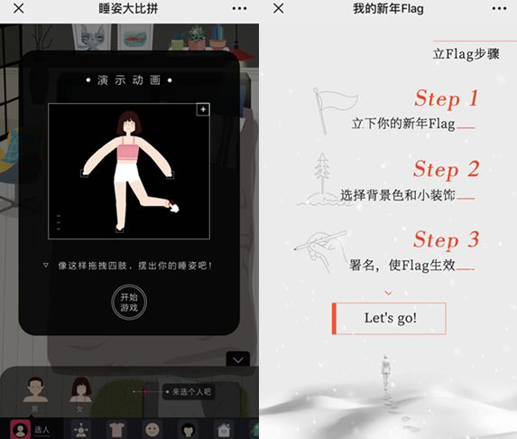个性类:用户可以自己调整如个人肖像、着装、睡姿等行为的裂变玩法,满足的是自我实现的需求,比如网易出品的「睡姿大比拼」H5就是个性类;