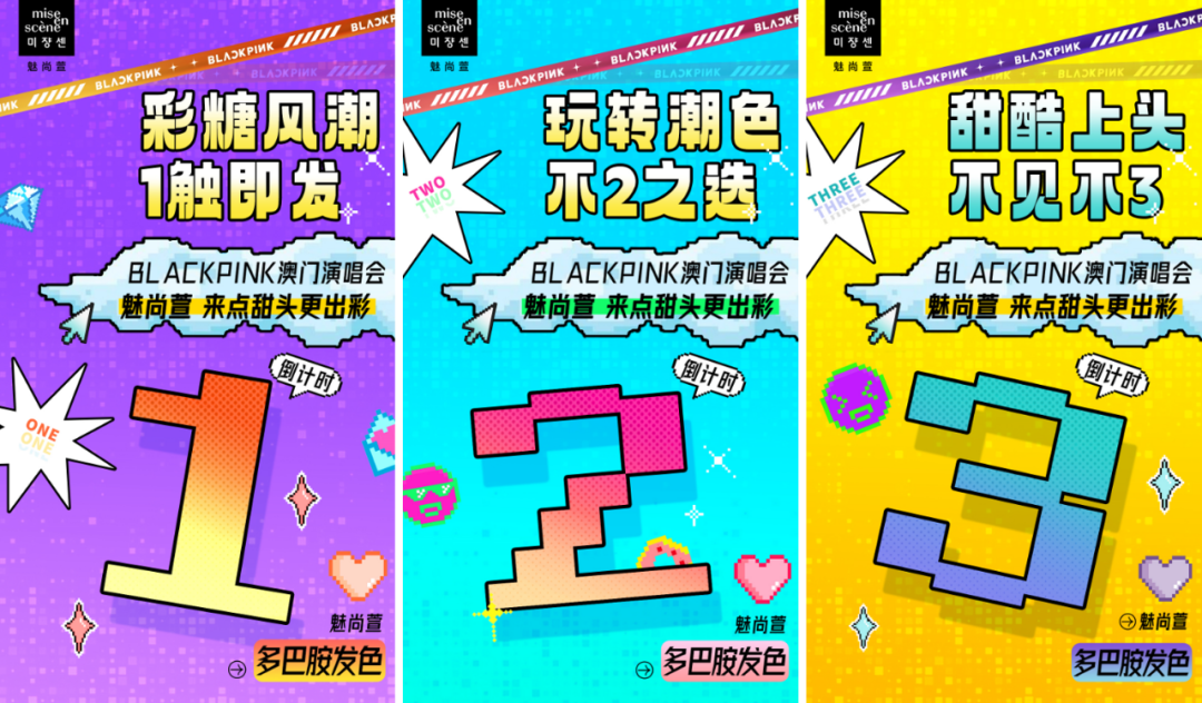 同时结合时尚潮流趋势—多巴胺情绪色彩,挖掘代言人BLACKPINK甜酷本色与魅尚萱时髦多色的产品特点,在520节点在线给粉丝发糖,将四款主打色对应四种情绪,与用户开展多巴胺“多彩甜头”之旅招募品牌新顾客,并最终转换为实际购买。