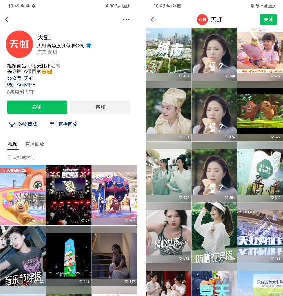另一账号「天虹欢乐时光」,则发布的视频内容更侧重活动相关。
