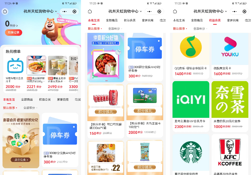 3.积分兑换体系很丰富:作为一家连锁的大型购物中心,天虹有实力和不同行业的品牌们进行合作。因此天虹的积分兑换体系非常丰富,不仅可以兑换实体商品,也可以换购优惠券、线上平台的月度会员等等。
