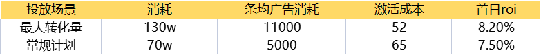 从上述数据来看,「最大转化量」广告的条均消耗是常规计划的两倍多,而激活成本降低了与常规广告相比20%,首日ROI提高了10%,整体效果还是比较明显的。非常推荐大家去尝试一下。