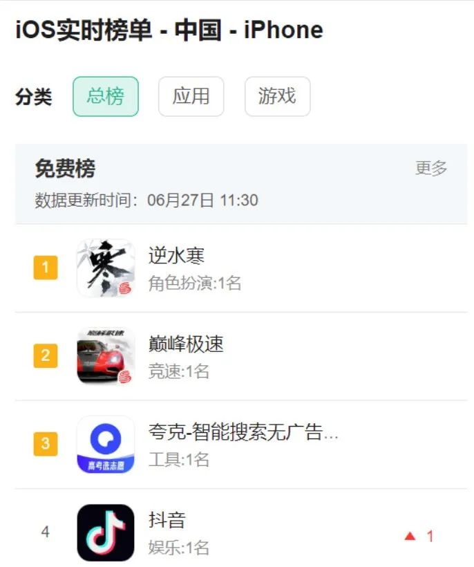 (2)完成冲榜需求:一般iOS为主,因为iOS免费榜是以下载量排序的,排名前的产品都会获得额外的自然流量推荐。预约积累的用户在首发当日会自动下载,可在当天快速完成冲榜动作,从而获得更大的流量。