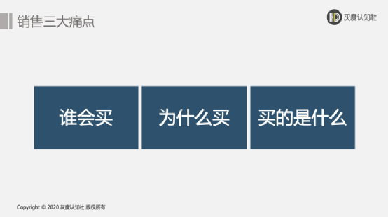我们给出一个非互联网人也能用的模型,叫销售三大痛点。