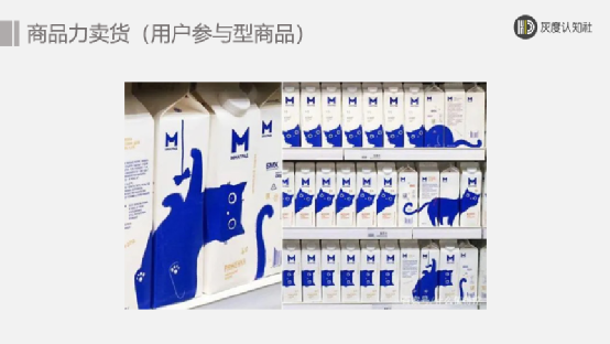 这是俄罗斯的一款本来很普通的乳品,后来改了包装。总有些好事者,要把这个猫在货架上给完整地展示出来。于是,出现了一个现象,参与的人,就认为这个品牌和自己有比较强的关联性,既而产品销量大增。