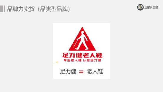 很多传统品牌都希望自己打造成品类型品牌,也就是“品牌=品类”,例如“足力健=老人鞋”。但是这个也有问题,一是宣传费不够多不够持久,大家就忘了;二是对手也这么说,大众就混淆了。