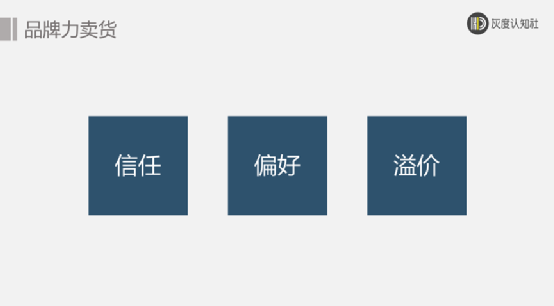 我们所说的品牌力卖货主要体现在“信任、偏好、溢价”三个方面。