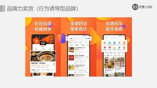很多互联网知名品牌都没有朗朗上口的广告语。比如微信是啥广告?大众点评呢?可是,为什么人在吃饭的时候,就能不自觉地唤醒肌肉记忆(不是用脑袋先思考后打开),打开大众点评搜索一下呢?这就是互联网擅长的行为诱导。不服不行。