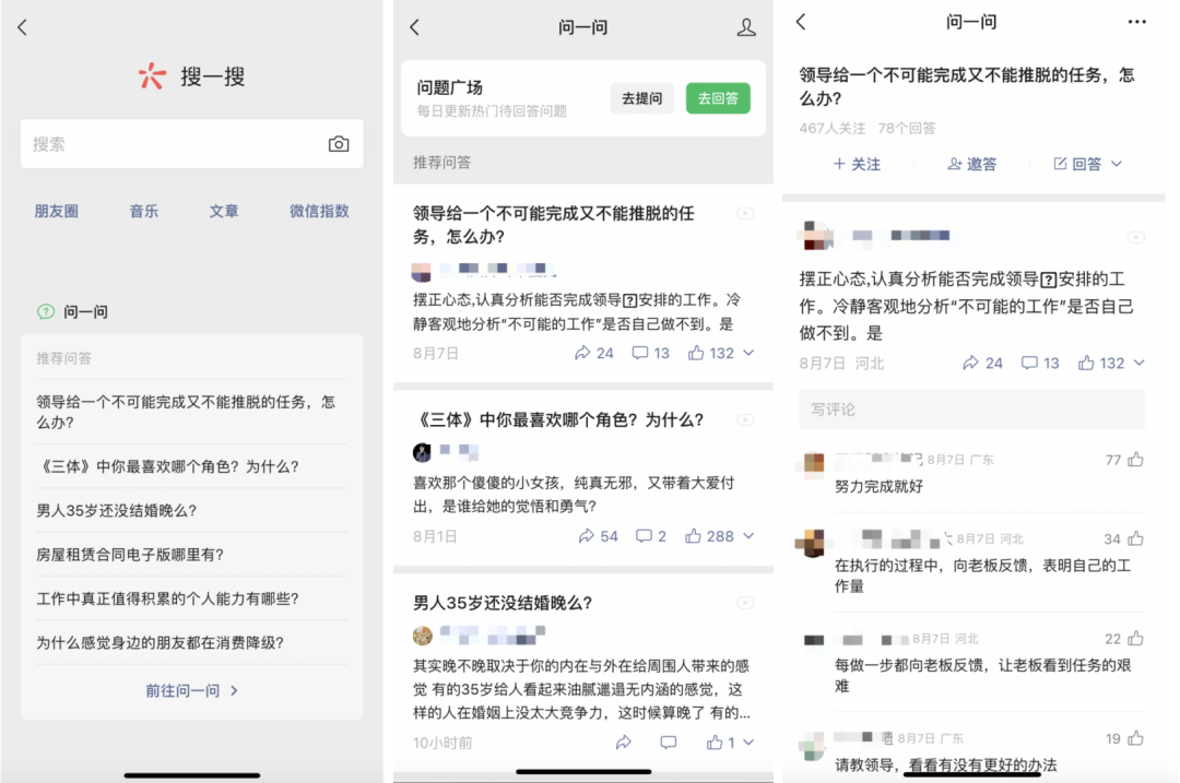 最近很多朋友应该都注意到,在微信的「搜一搜」页面上,新增了一个名为「问一问」的板块。