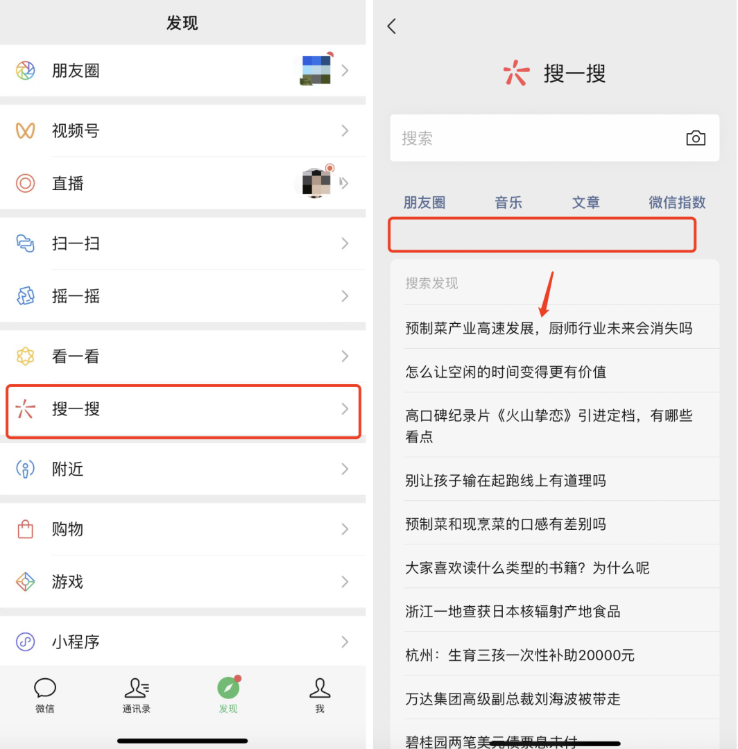 1)点击「发现」2)点击「搜一搜」3)随意点击一个话题 4)返回之后就会显示「问一问」入口