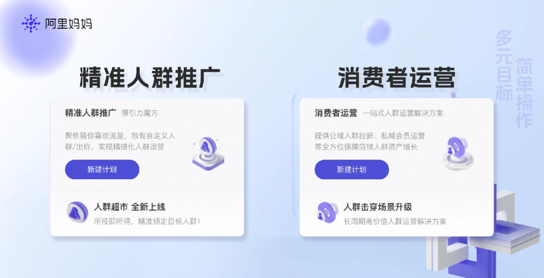 在操作简单之上,万相台无界版做到了经营分析、投放决策和投放过程的简单。其加入了多维度的经营分析能力,帮助广告主站在全局视角去看清经营问题,而不是头疼医头的思维。看清问题后,在商家投放决策时给出投放建议,简单决策。而投放过程则更加简单,不仅界面、操作简单,智能化的投放也让投放过程变得简单。