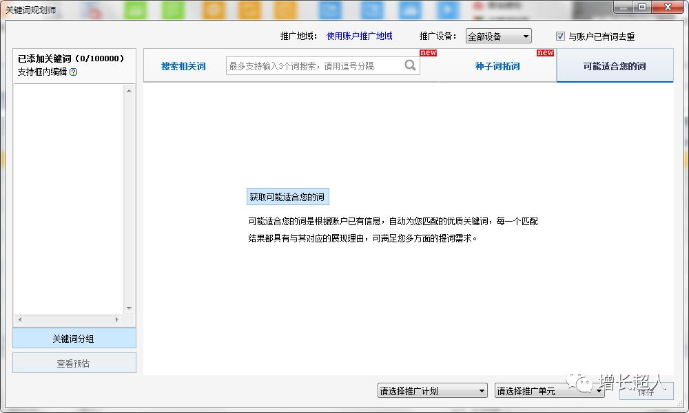 关键词规划师是百度推广客户端自带的一个工具,也是我们最常用的工具之一。在关键词规划师中,可以搜索出大量的百度推荐关键词,都是较为精准的关键词。