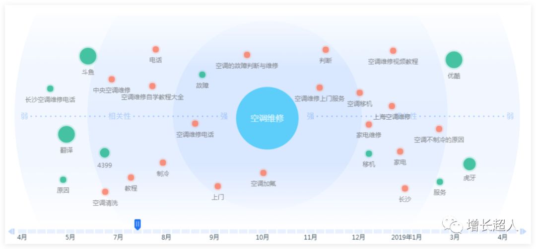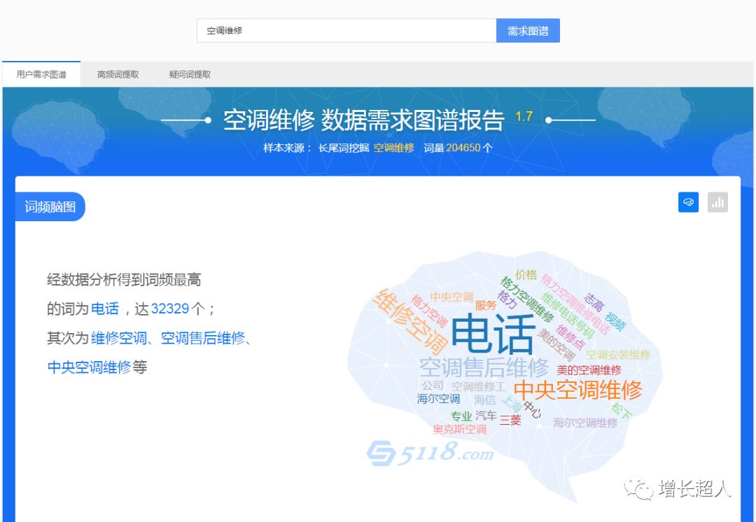 比如搜索空调维修,会挖掘出电话、维修点、服务等词根,还可以知道这些相关词的词频,词频量越大关键词搜索量越大。