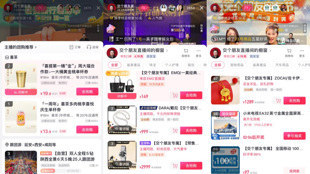 - 欢迎来到我们交个朋友的直播间,点击下方关注并加入我们的购物粉丝团即可参与超级福袋抽奖哦,参加以后记得不要离开直播间,不然抽奖失效了。