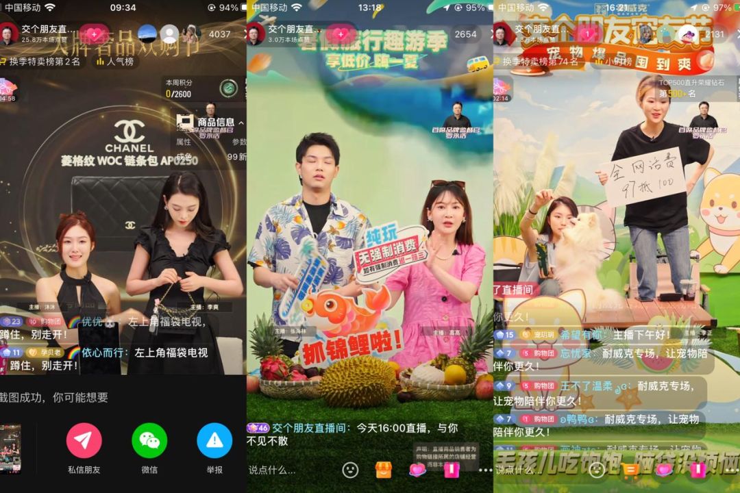 交个朋友圈直播间:一周七天,每天早上6点播到凌晨2点左右,平均时长约20小时;每位主播直播4小时以上,平均观看人次约50.2万人。
