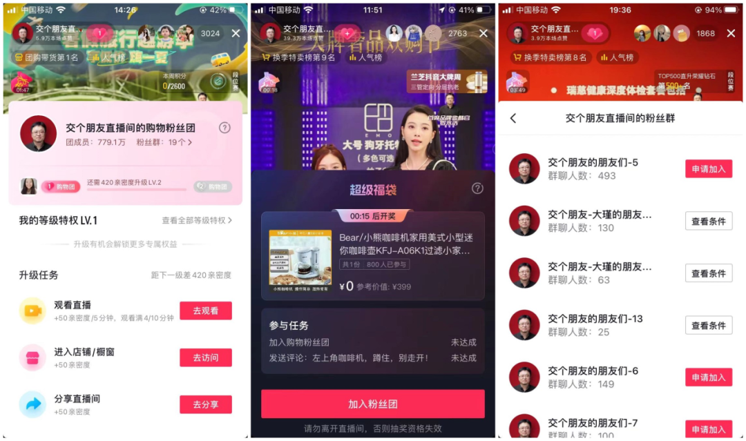 抖音粉丝群:加入购物粉丝团后,可以点击粉丝群即可立即加入(有些群需要完成条件)。