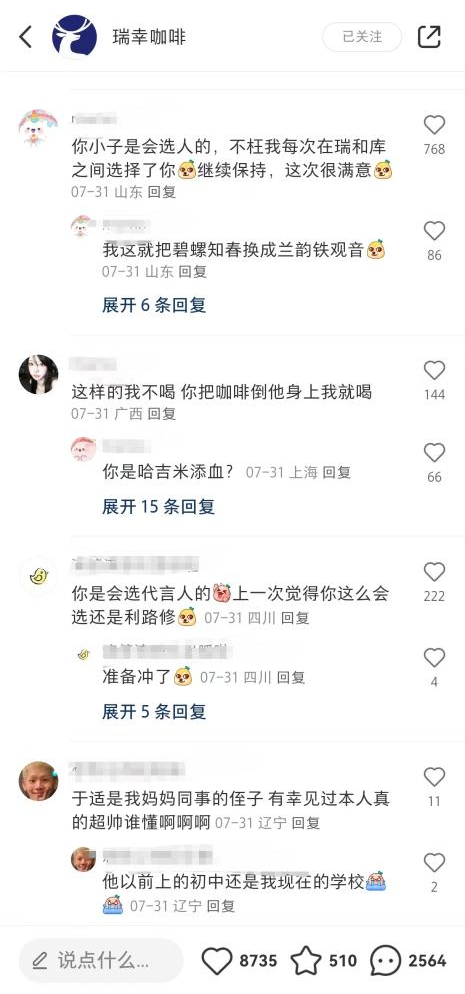 用明星来拉动传播声量是一种非常有效的方式,尤其是对于瑞幸这样以年轻群体为主的品牌来说,新生代明星的号召力更是不容小觑。不过瑞幸并没有把注意力集中在最“主流”、最“大牌”的核心人物上,而是找到热播剧中相对受欢迎且足够亮眼的一位,以最快的反应速度赶上这波热点。