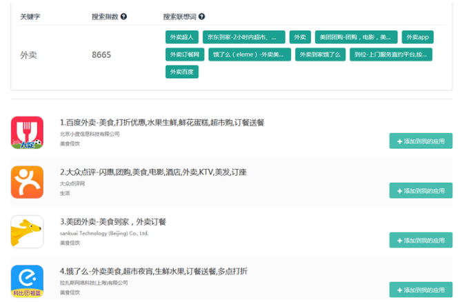 我们以ASO114为例,搜索一下外卖项目竞品,如下图;