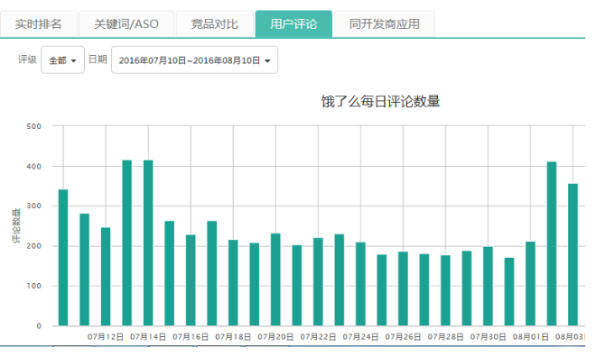 从上图工具可以清楚的看到7月13日当天美团外卖下载量高达9W+,存在一个高峰值。由此我们也可以有意的回看当天美团的一些推广策略以便借鉴。