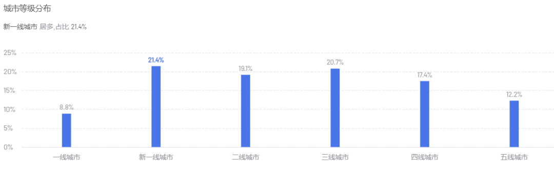 消费者主要集中在新一线、三线及二线城市,以广东、成都、重庆为主,呈现均衡多元的客群分布形式。