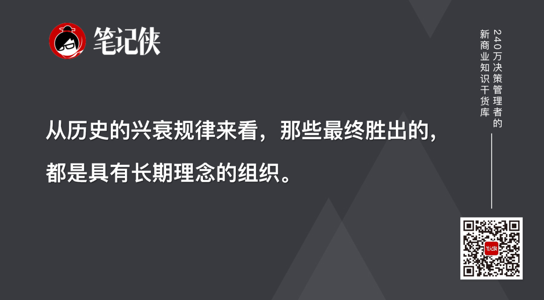 从历史的兴衰规律来看,那些最终胜出的,都是具有长期理念的组织。