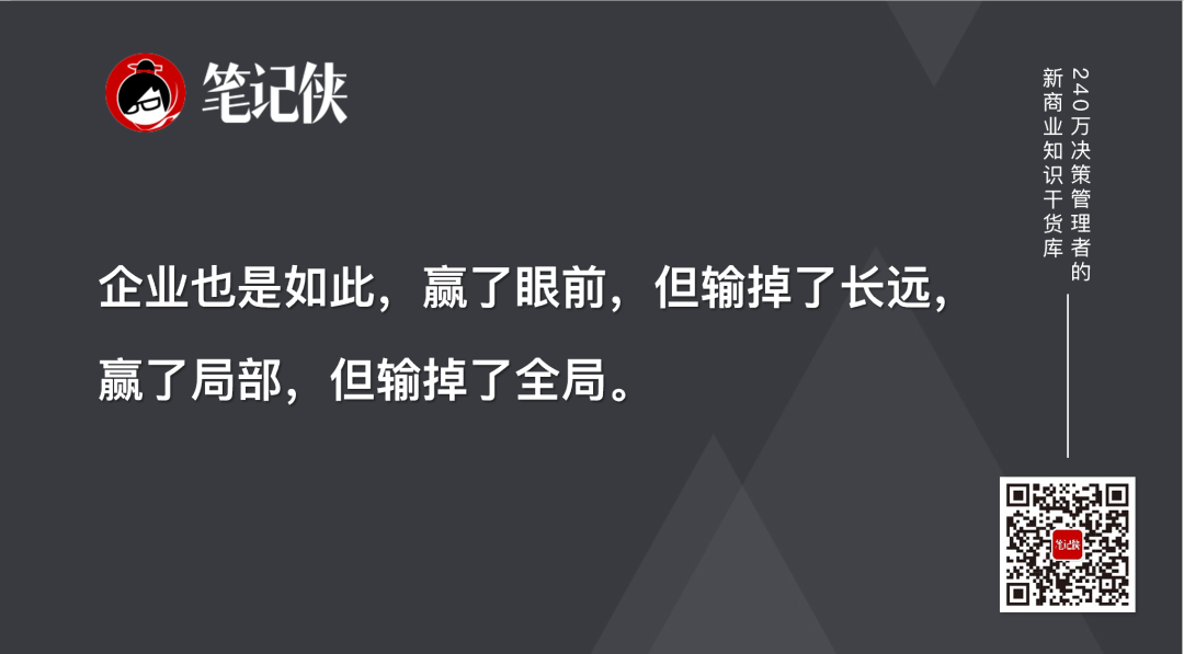 企业也是如此,赢了眼前,但输掉了长远,赢了局部,但输掉了全局。