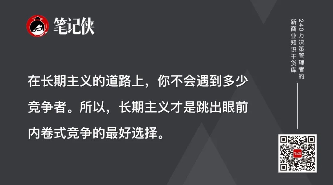 在长期主义的道路上,你不会遇到多少竞争者。所以长期主义才是跳出眼前内卷、焦虑的最好选择。