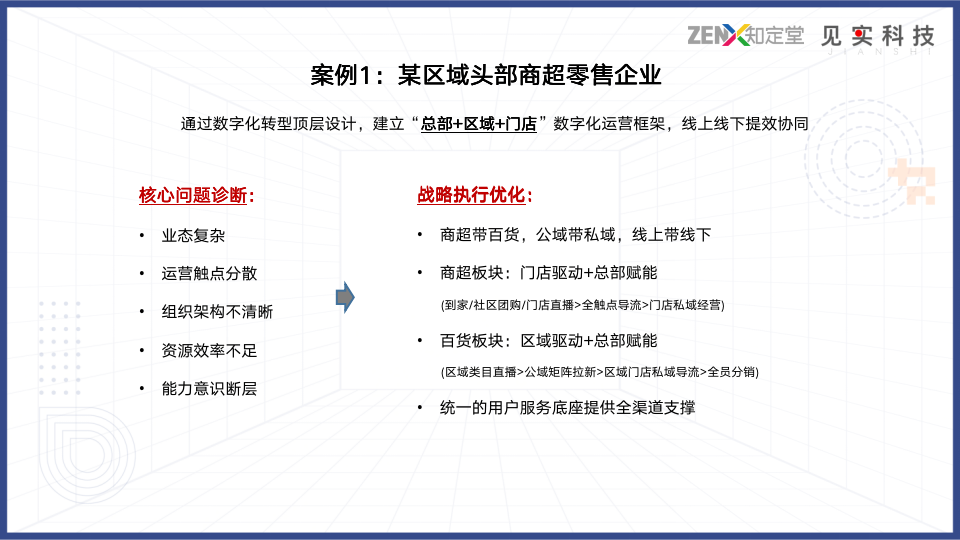 商超百货在数字化转型中,涵盖了线上触点,如社区团购和抖音本地直播等,这些都是公域触点。为了有效执行和实施,必须将策略贯彻到各门店,因为每家门店的商品、促销和销售机制都有所不同,无法在区域或总部层面进行统一。