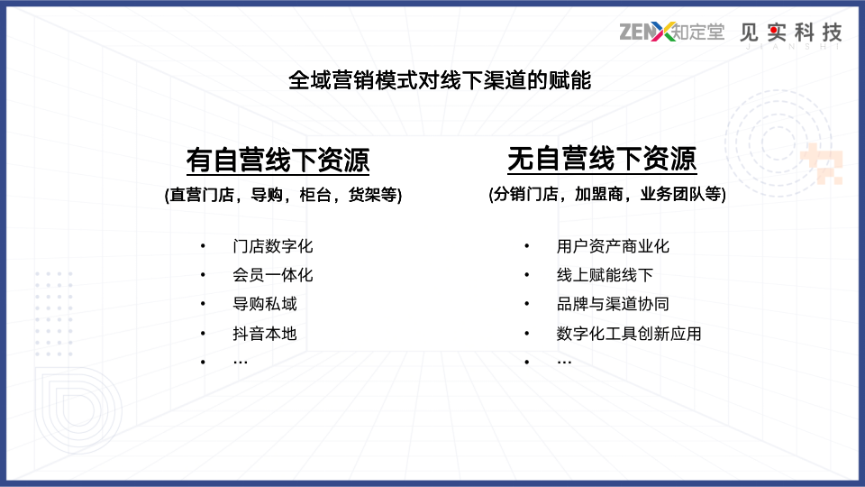全域营销模式对线下渠道的赋能分为两种:直营和加盟。