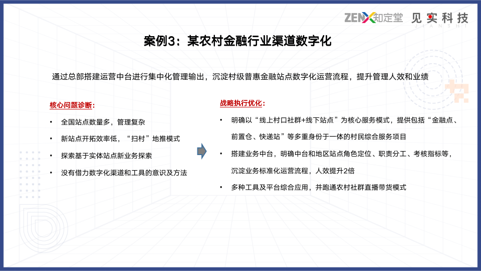 三是,金融吸储的挑战,虽然已经将服务扩展至村庄内,但如何吸引村里的老百姓过来?如何在城市里积攒资金?实际上在数字化之前还是被动的,基于以上业务基础判断,我们提出以下建议: