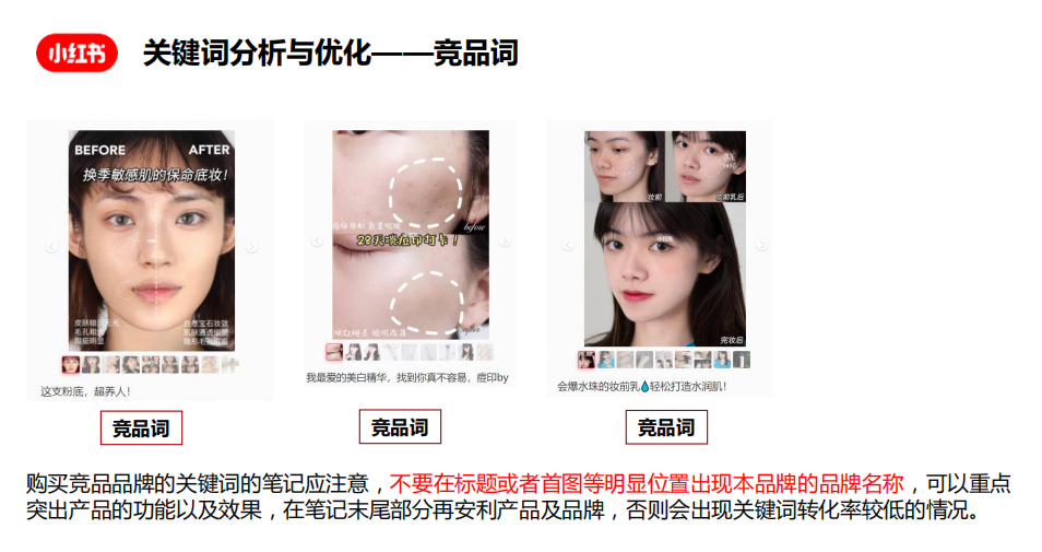 功效词通常也是转化率最高的词,小红书内容营销的核心是能给搜索该词的用户带来什么信息、价值。对于核心词功效的布局,一定要做好内容匹配和首位占领。功效词应该在笔记创作之前,就规划好预埋在笔记内,并根据规划进行搜索词设置拓展。