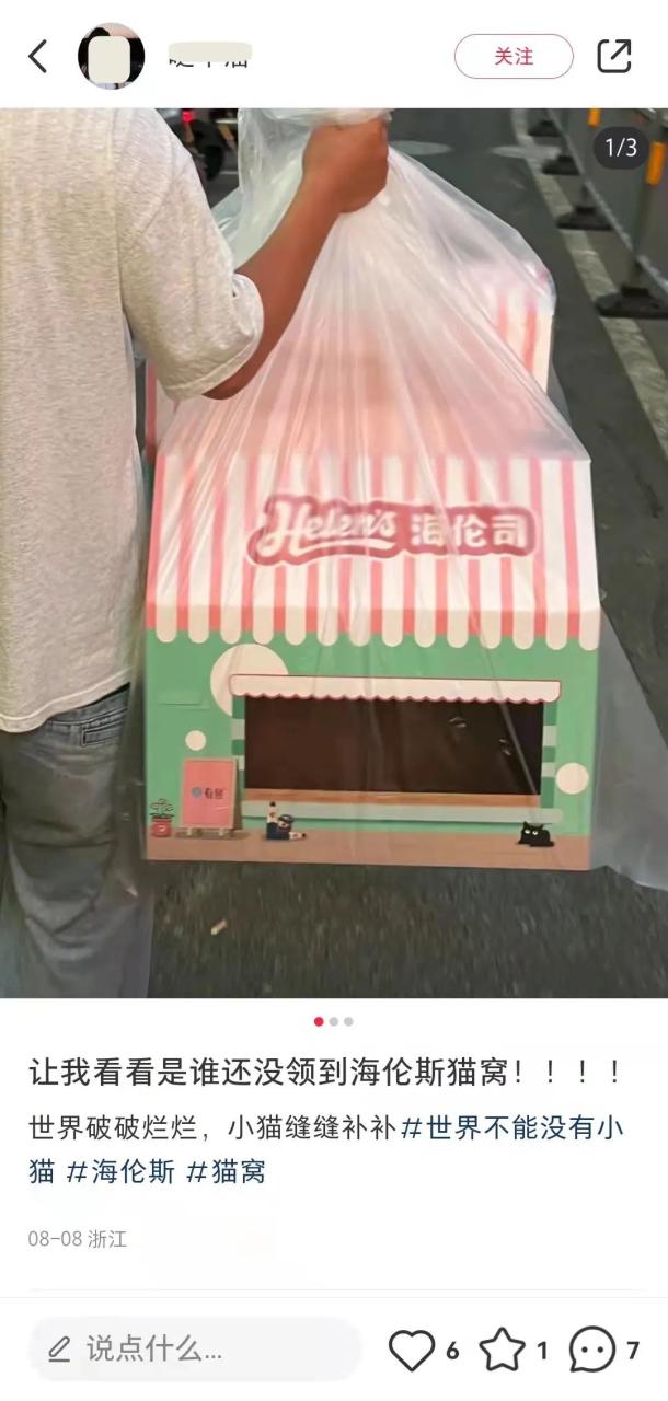 “夜猫补给包”正是海伦司与“有鱼”品牌进行的周边共创,其中“海伦司猫窝”,以小酒馆造型、大飘窗等趣味设计,成为了小猫咪的造梦屋,也成为了铲屎官眼中的爆款单品,粉丝们花钱都不一定能买到如此抢手的猫窝,更何况这还是免费赠送的。