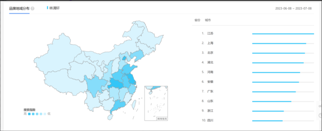 品牌的主力消费军主要分布在江苏、上海、北京等一、二线城市,用户主要为30-39岁的女性用户。