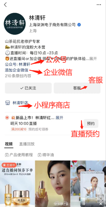 ①账号介绍:山茶花抗老修复专家,林清轩的宠粉大本营;