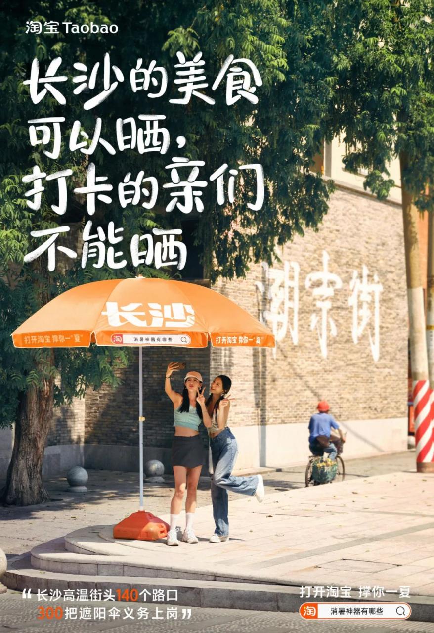 这次不一样,淘宝设计投放一个个「橙色遮阳伞」,不是单纯它当作媒介讯息,而是真实地能帮群体解决当下痛点。